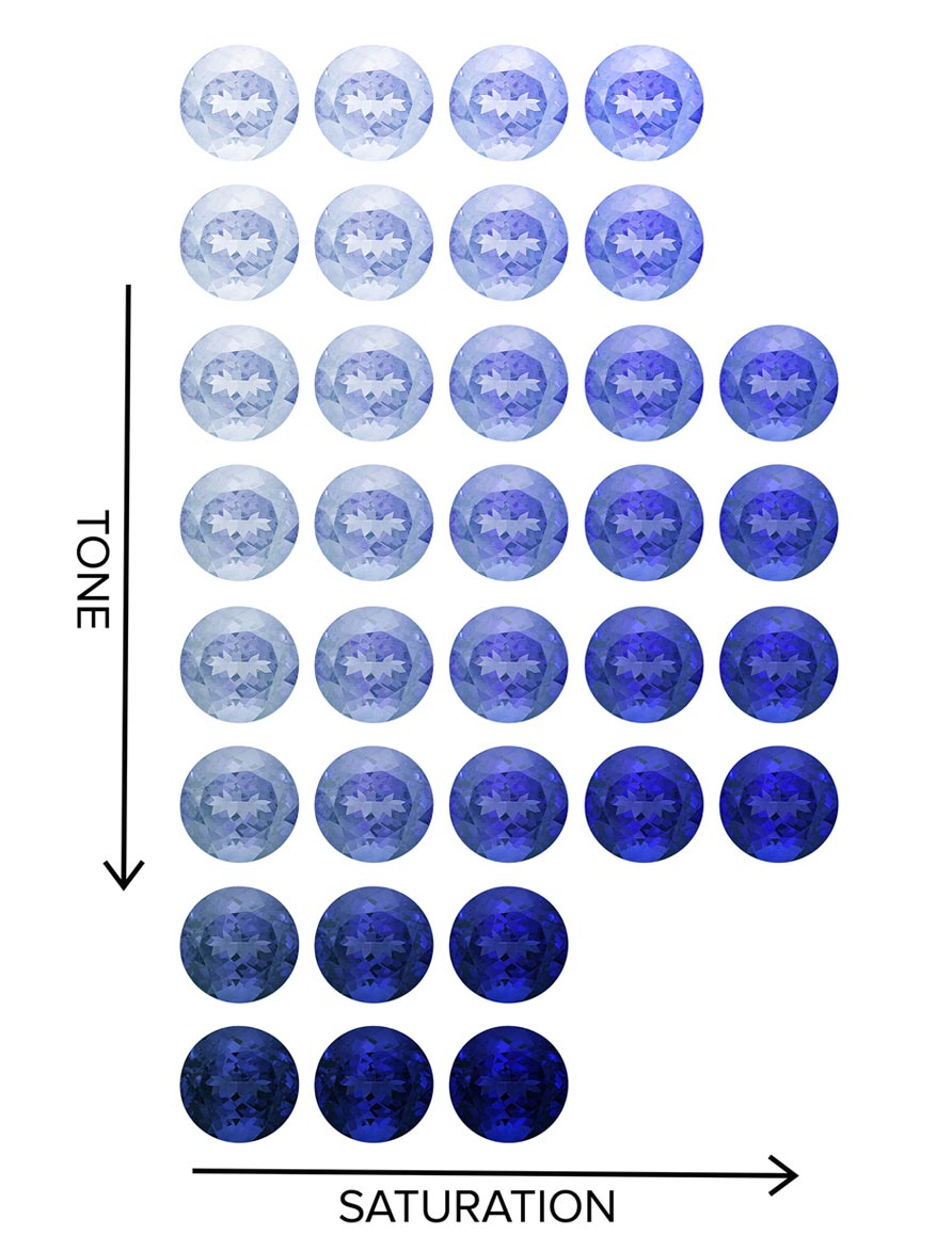 Refers to the overall body color. The finest Safi Kilima Tanzanite can either be bluish or a violetish blue. The more saturated the blue or violet color the more valuable the gem is. Avoid pale and grayish tanzanite.